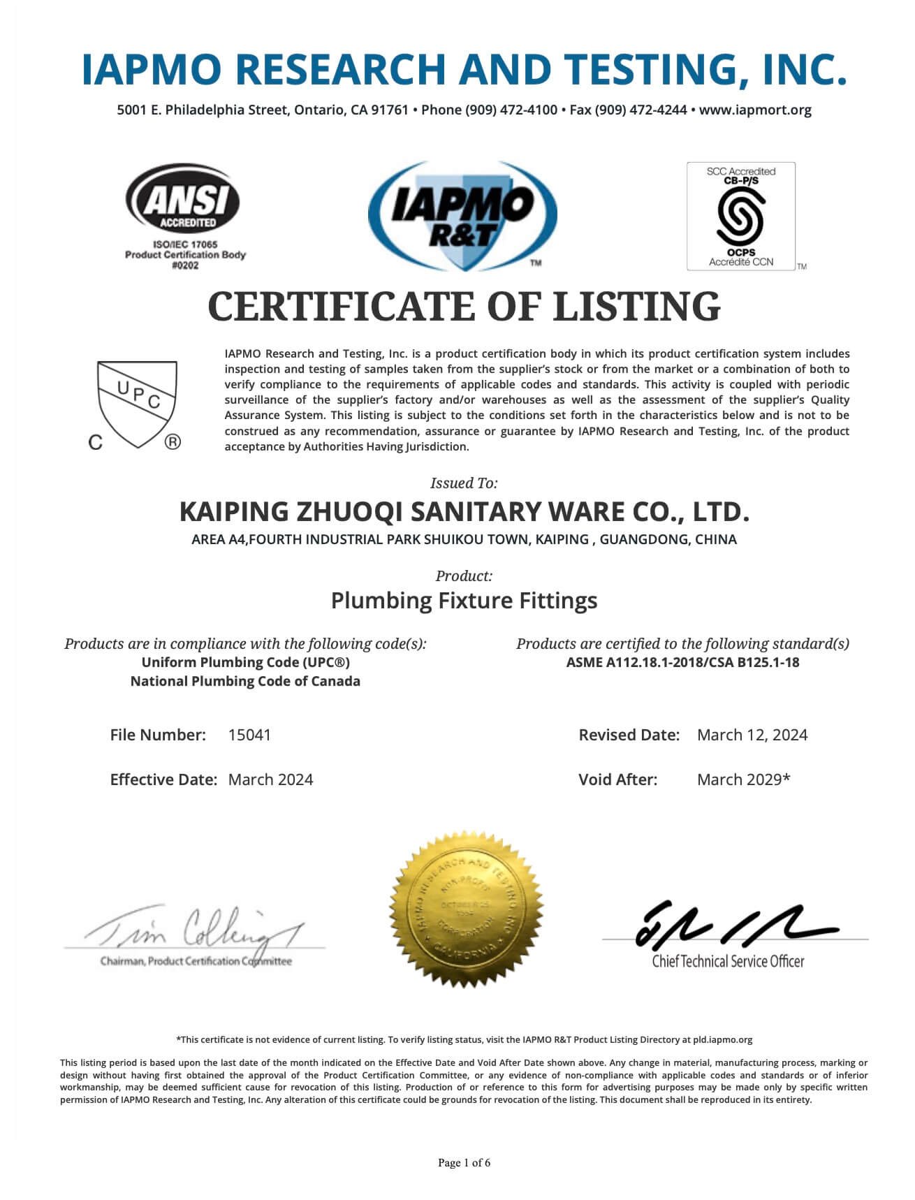 Our sinks are certified with CUPC, CE, and ISO9001 to meet international quality and safety standards.